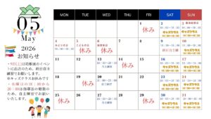 水曜日の18:00~20:00は指導法の勉強のため、自主練習でお願いいたします。